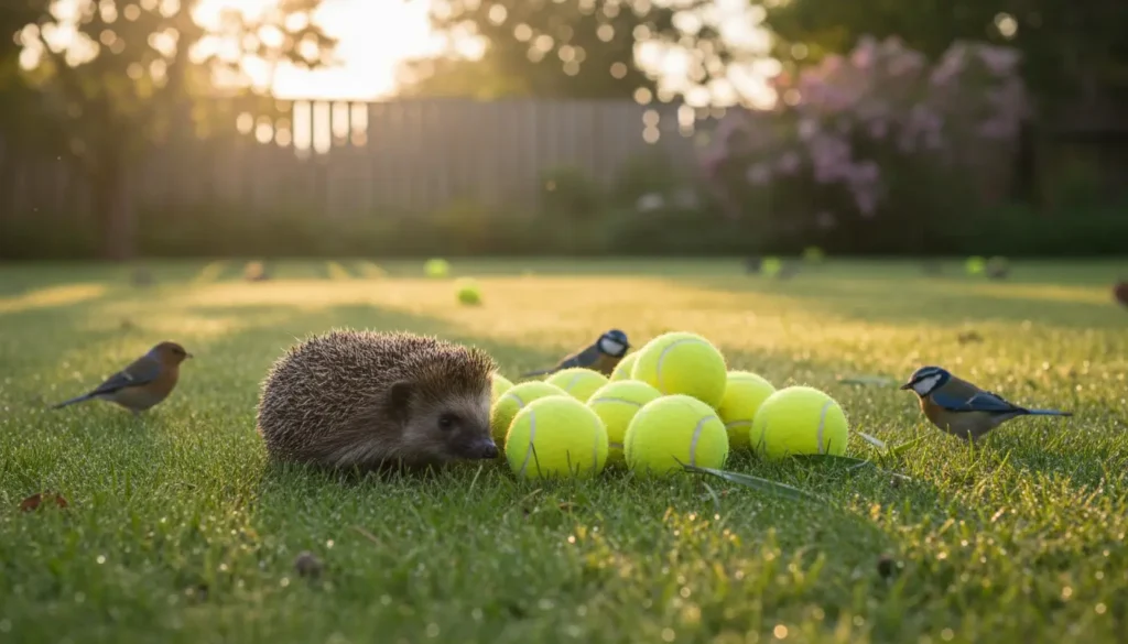 Small, cheap items can make a big difference for wildlife. Tennis balls are bright, light and easy to adapt. Used